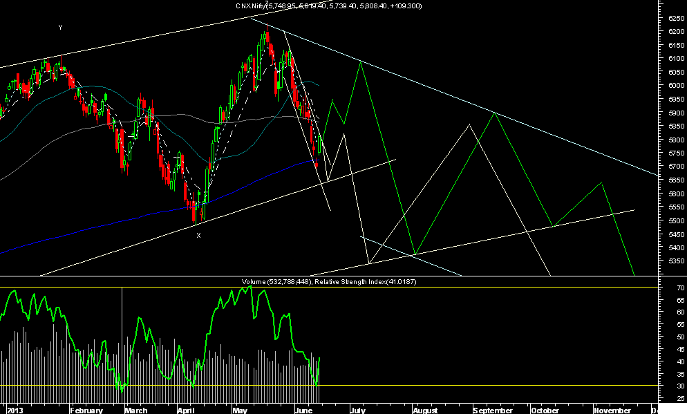 (I) For Short term Nifty needs to break above 5869 to confirm Trend Reversal. If Nifty manages to hold 5738-54 & break 5869 we can Expect move towards 6088 followed by larger Fall to 5370 later.. And so on..(This will be similar to 2011 Pattern)